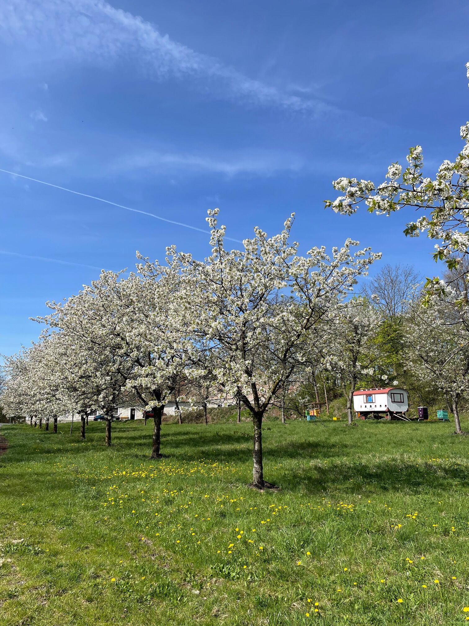 Nabízíme možnost přijet karavanem nebo obytnou dodávkou a strávit noc v tichu našeho třešňového sadu.