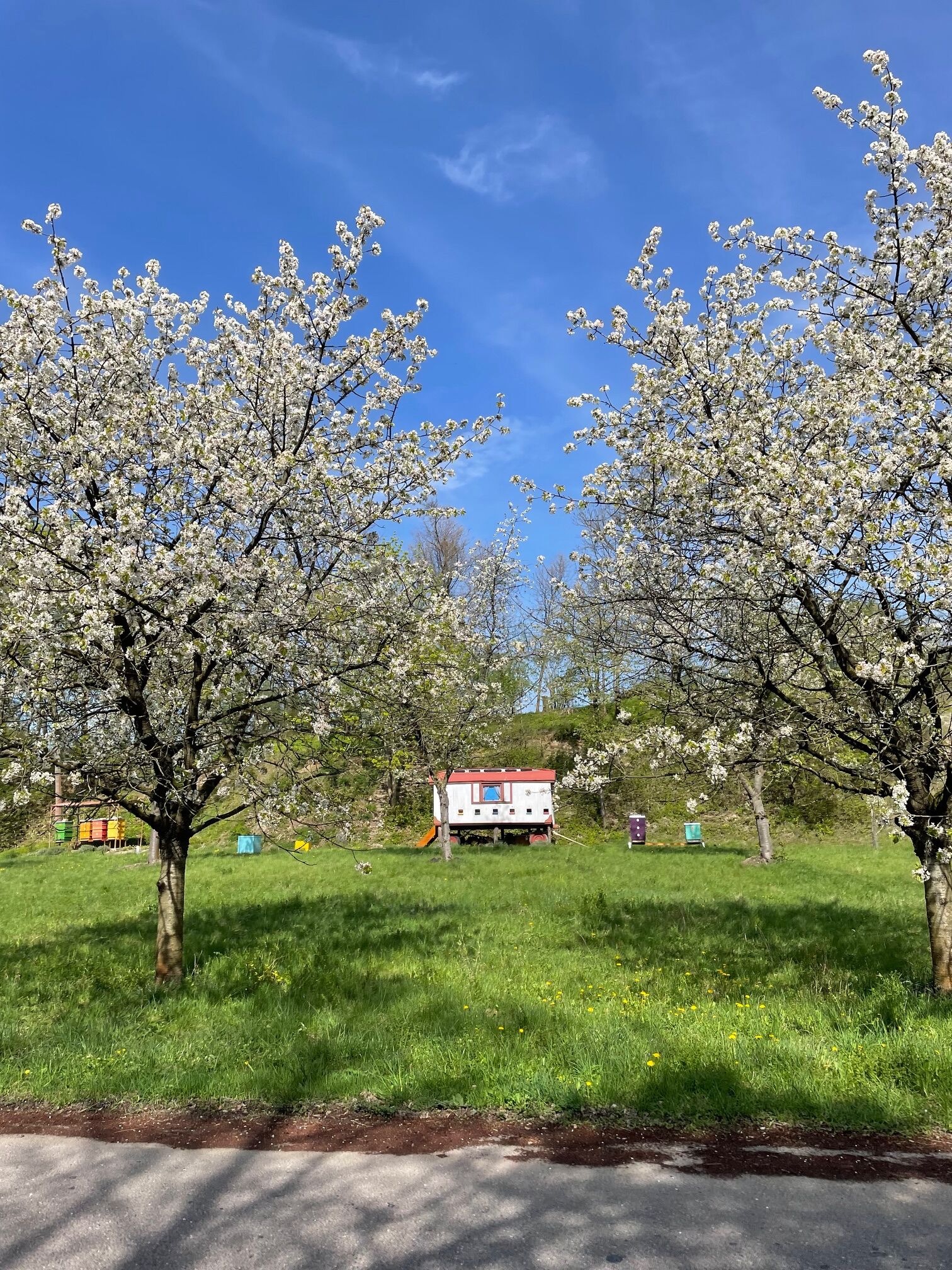 Proto chceme náš sad otevřít i vám – ať už přijdete ochutnat med, projít se mezi stromy nebo si jen na chvíli odpočinout mezi včelami.