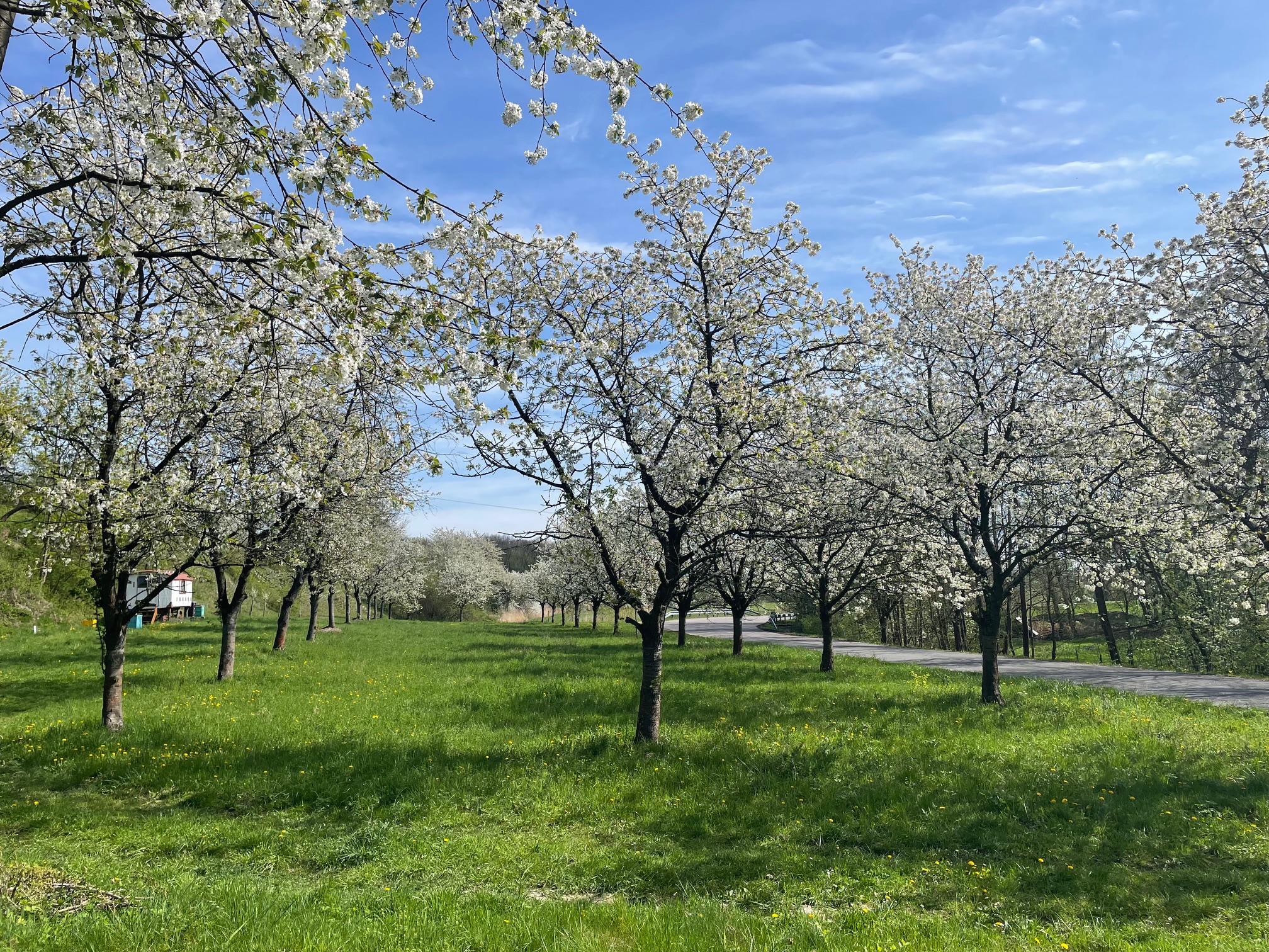 Včelaříme v třešňovém sadu, kde má každé roční období svůj rytmus.